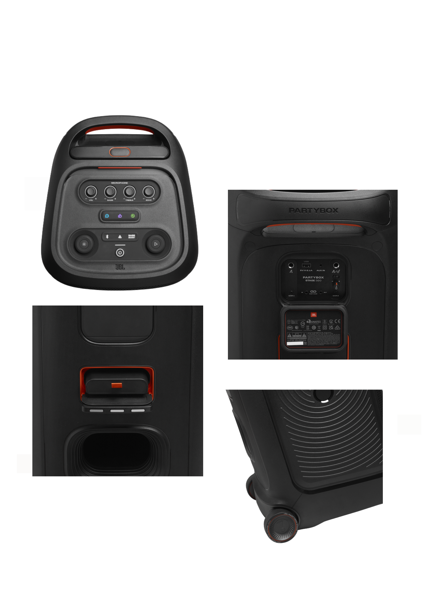 Com a JBL PartyBox Stage 320, você pode começar a festa a qualquer hora, em qualquer lugar. Transforme qualquer espaço, dentro ou ao ar livre, em uma pista de dança. O poderoso JBL Pro Sound tem graves impressionantes que preenchem um palco sonoro amplo e agitam a multidão, enquanto seus olhos ficam encantados com um show de luzes adaptável com luzes estreladas cintilantes, trilhas de luzes frias e efeitos estroboscópicos incríveis sincronizados com seu ritmo. Use as entradas de microfone e violão/guitarra para mostrar sua presença de palco. Você pode controlar o fluxo da festa durante toda a noite com efeitos interativos divertidos. A alça telescópica sólida e as rodas largas e resistentes permitem que você transporte a JBL PartyBox Stage 320 para praticamente qualquer lugar e, quando estiver lá, a estrutura à prova de respingos significa que um pouco de chuva não arruinará a diversão. O melhor de tudo é que ela oferece até 18 horas de reprodução e, se os bons momentos ainda estiverem acontecendo, basta trocar a bateria substituível e continuar. Para uma festa ainda maior, é fácil conectar ou usar o aplicativo JBL PartyBox para conectar várias caixas de som habilitadas para JBL Auracast sem fio. Reúna as pessoas e exalte a experiência com a JBL PartyBox Stage 320.