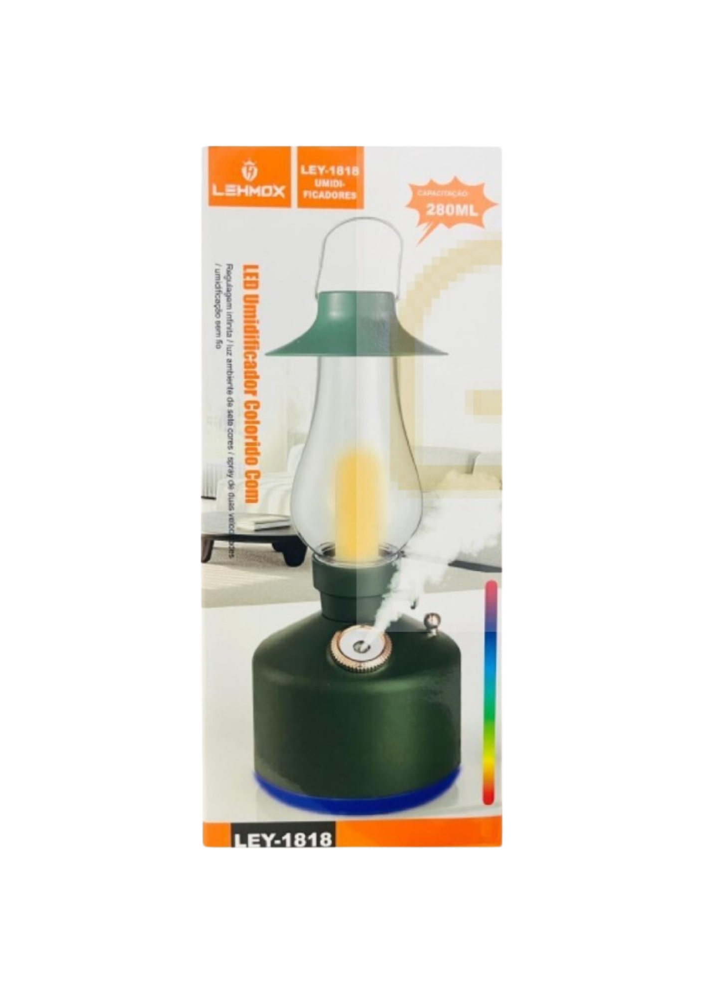 Umidificador E lampião led colorido regulagem infinita ,luz ambiente ,splay de duas velocidades ,umidificação sem fio.